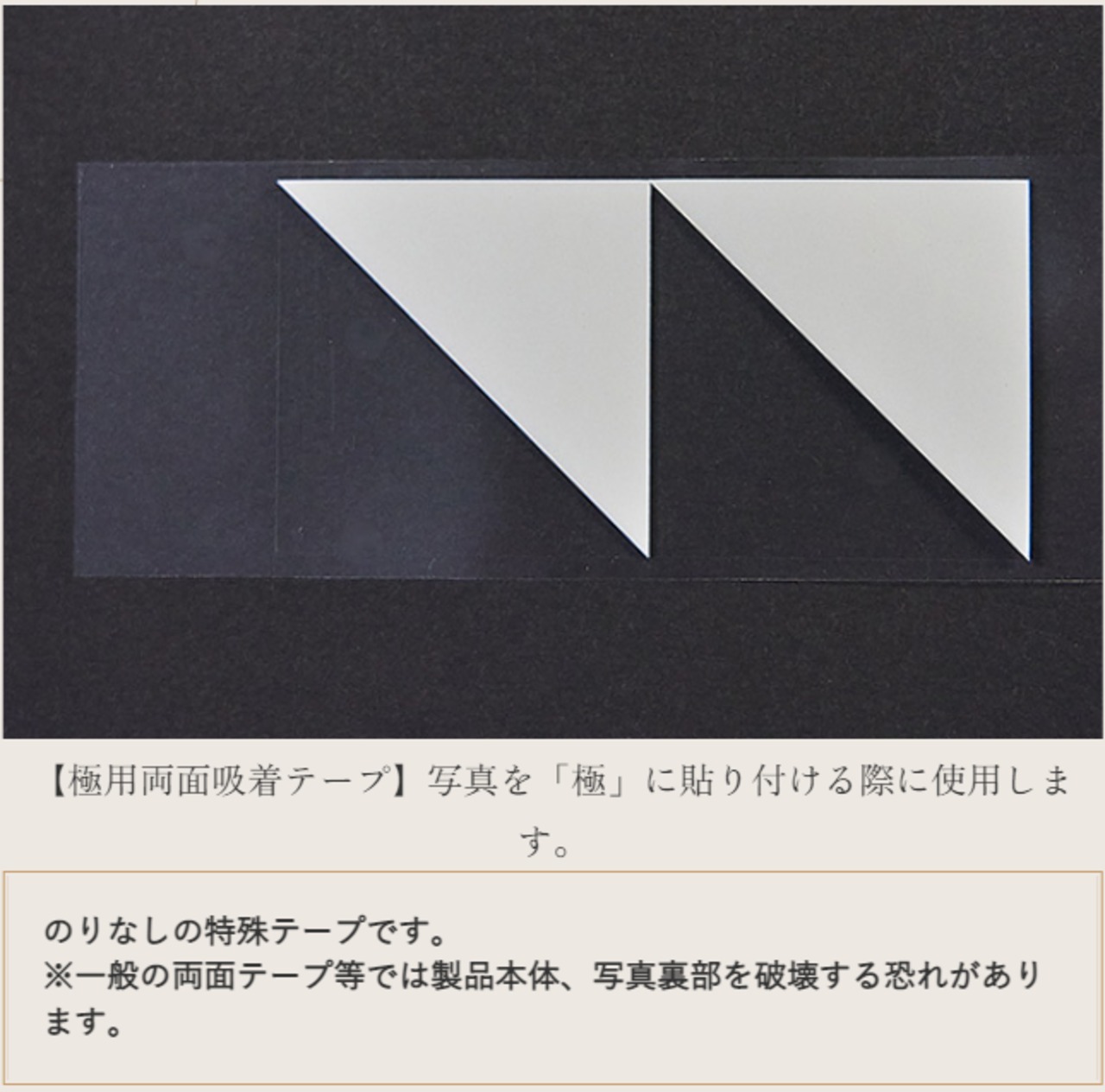 ・写真を傷つけない。専用「吸着両面テープ:Dr.テープ(のりなし)採用